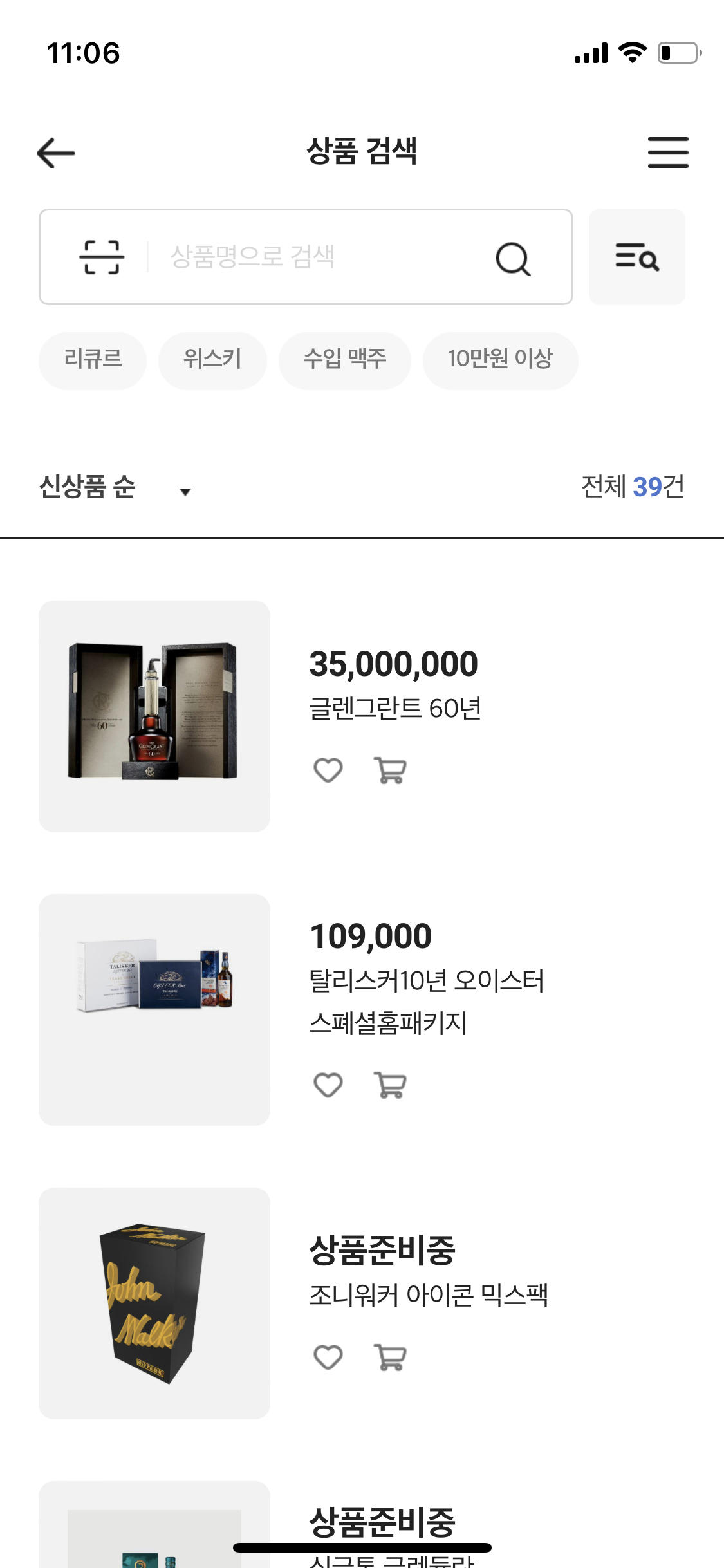 검색 결과에서 마음에 드는 주류를 선택해주시면 됩니다.